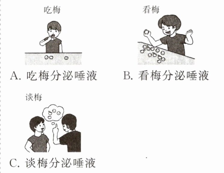 活动3:题图中的A吃梅分泌唾液和缩手反射属于同一类型。C谈梅分泌唾液是人类特有的。