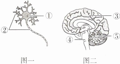 ]______。(4)图二中,调节心跳、呼吸等重要生命活动的中枢位于[