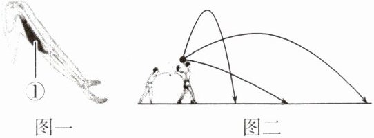 分泌滑液,提高关节的灵活性。(2)康康在掷实心球时,图一中①处于
