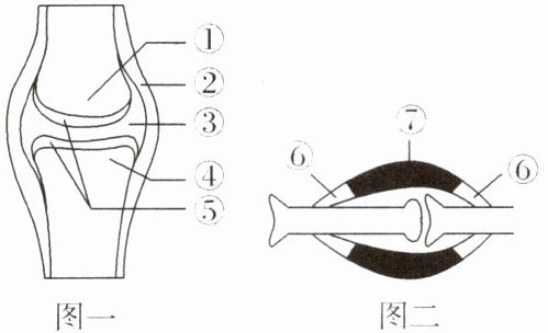的作用。图一是关节示意图,在跑跳过程中,能够增加关节牢固性并有效防止脱臼的结构是[②