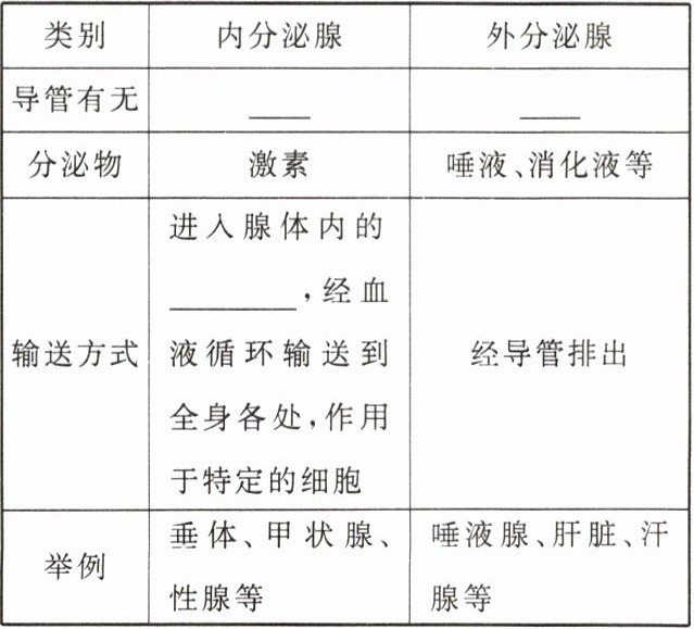 2. 列表比较内分泌腺和外分泌腺