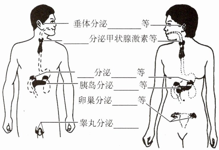 生长激素 甲状腺 肾上腺 肾上腺素 胰岛素 雌激素 雄激素