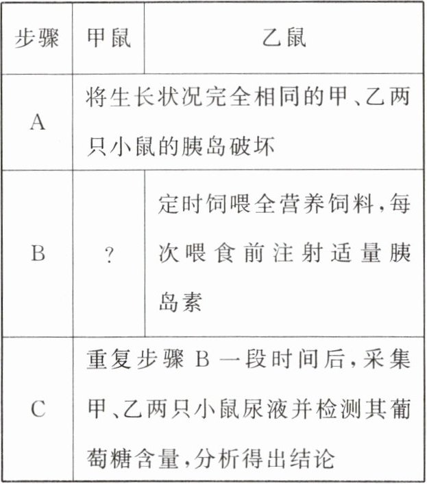 (2)在 A 步骤中将两只小鼠的胰岛破坏,目的是避免小鼠自身产生