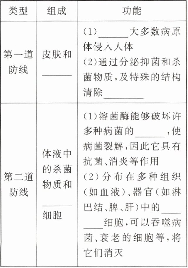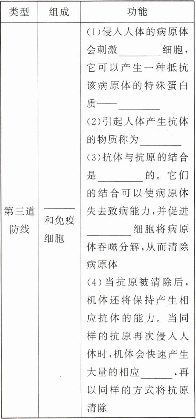 黏膜 阻挡 病原体 吞噬 细胞壁 吞噬 免疫器官 淋巴 抗体 抗原 特异性 吞噬 抗体