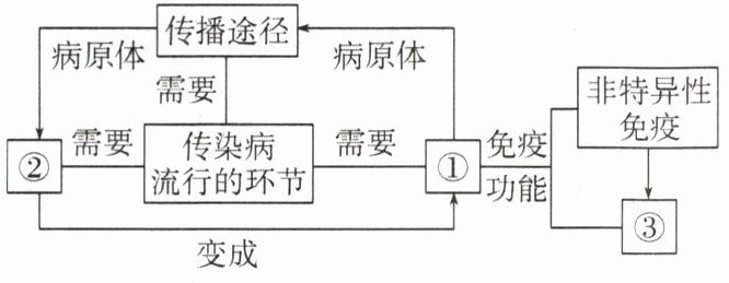 (2)炭疽杆菌能引起炭疽,从传染病学角度看,它是传染病中的病原体。患炭疽的家畜和人能散播病原体,属于传染源,对应题图中的①。某人在未患病前,对炭疽病缺乏抵抗力,容易感染炭疽杆菌,属于易感人群,对应题图中的②。