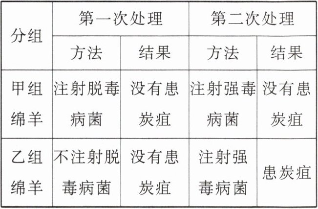 (1)在实验中,甲组绵羊注射脱毒病菌,是接受实验变量处理的组,为实验组;乙组绵羊不注射脱毒病菌,与甲组形成对照,起对照作用,用于对比观察实验结果,以确定注射脱毒病菌这一因素对实验结果的影响。