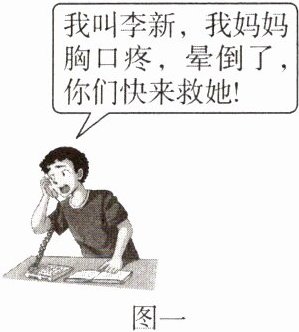 (1)图一中李新正在拨打急救电话,他的叙述中缺少的必要信息是什么?