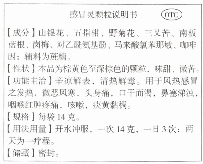7. 如图是某品牌感冒灵颗粒说明书的部分内容,与该药使用有关的叙述正确的是(