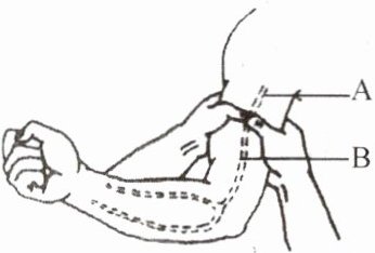 A 解析:从题图中可以看出止血的方法是指压止血法;如果题图中的A处出血,而止血部位是远心端,则一定是静脉出血;如果题图中的B处出血,而止血部位是近心端,则一定是动脉出血;如果题图中B处流出的血呈鲜红色,则一定是动脉出血。