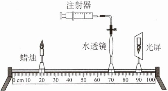 12. 某实验小组用光屏、蜡烛、注射器和水透镜(注射器注水或抽水可改变水透镜的凸度)等制作了如图所示的模拟眼球成像装置。该装置中模拟晶状体的是(
