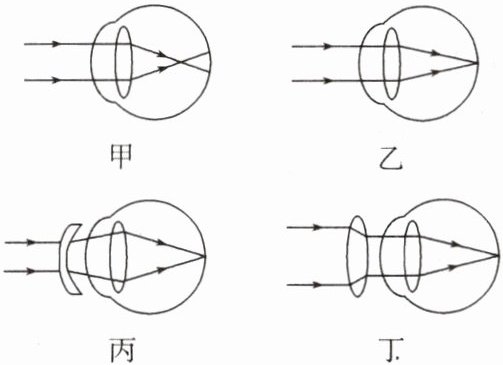 11. 儿童、青少年如果用眼不当,会使眼过度紧张和疲劳,引发近视眼。图中近视眼成像情况及矫正方法正确的分别是(