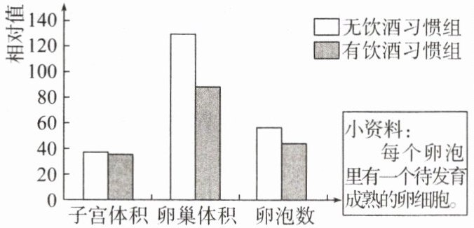 )A.饮酒会导致女性卵巢体积减小