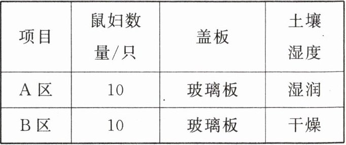 某兴趣小组想继续探究土壤湿度对鼠妇分布的影响,设计了如表方案。