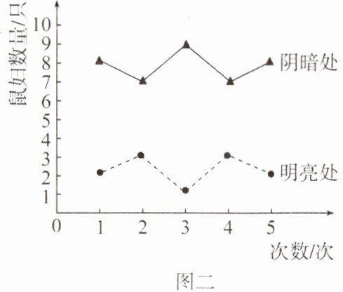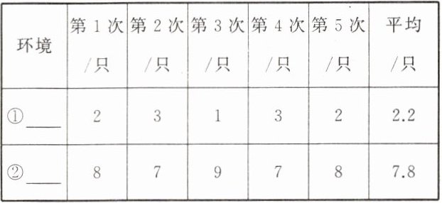 (4)仔细观察图二,将表格中环境一栏填写完整后再分析结果、得出结论。该同学对上述实验重复了5次,结果如表所示。