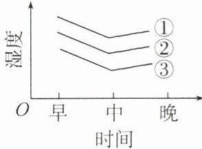 13. D 解析:通常情况下,这三个地点中灌木林的植被最为茂密,植物的蒸腾作用最强,能散失大量的水,空气湿度最大;草地其次;裸地没有植被覆盖,空气湿度最小。根据题目中的图像,曲线①的空气湿度最大,对应灌木林;曲线②的空气湿度次之,对应草地;曲线③的空气湿度最小,对应裸地。所以裸地、草地、灌木林所对应的曲线分别是③②①。