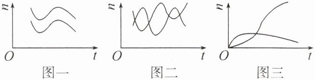 10. 下列三幅图分别表示两种生物种群随时间(t)推移而发生的数量(n)变化。那么,图一、图二、图三表示的关系依次是(