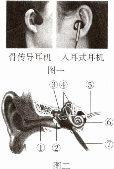 19. 研究人员根据人耳利用空气传导和骨传导听到声音的两种方式,制造出“入耳式耳机”和“骨传导耳机”,请据图回答下列问题。