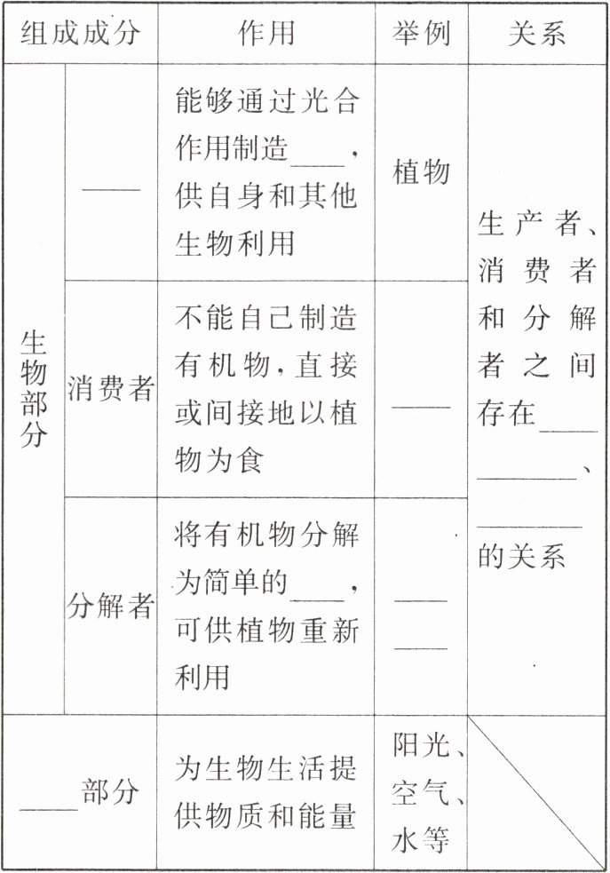 有机物;动物;无机物;细菌和真菌;相互依存;相互制约
