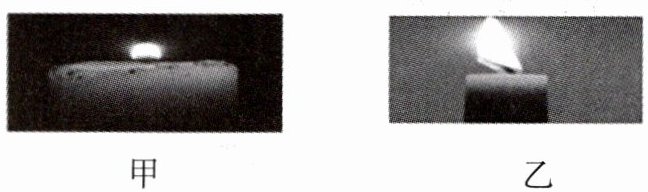 8. "天宫课堂"第四课在空间站与地面同步探究了蜡烛燃烧实验。实验中观察到空间站蜡烛的火焰呈球形(如图甲),地面蜡烛的火焰呈锥状(如图乙),且空间站蜡烛火焰比地面显得微弱。下列分析正确的是 ( )