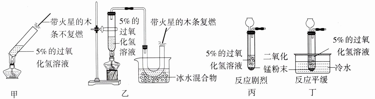C.对比图丙、丁可知,温度会影响化学反应速率