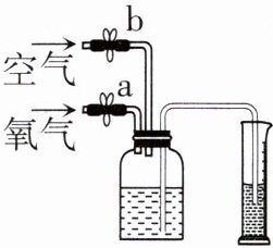 13.某化学兴趣小组需要一瓶(100 mL)含氧气的体积分数约为80%的气体,收集气体的装置如图。方法是在100 mL集气瓶里装满水,塞紧橡胶塞并关闭弹簧夹b,打开弹簧夹a通入氧气,把瓶里的一部分水排入量筒,当量筒内的水达到设定的体积后,立即关闭弹簧夹a;然后打开弹簧夹b通入空气,把瓶里剩下的水全部排入量筒。通入氧气的体积和通入空气的体积大约是 ( )