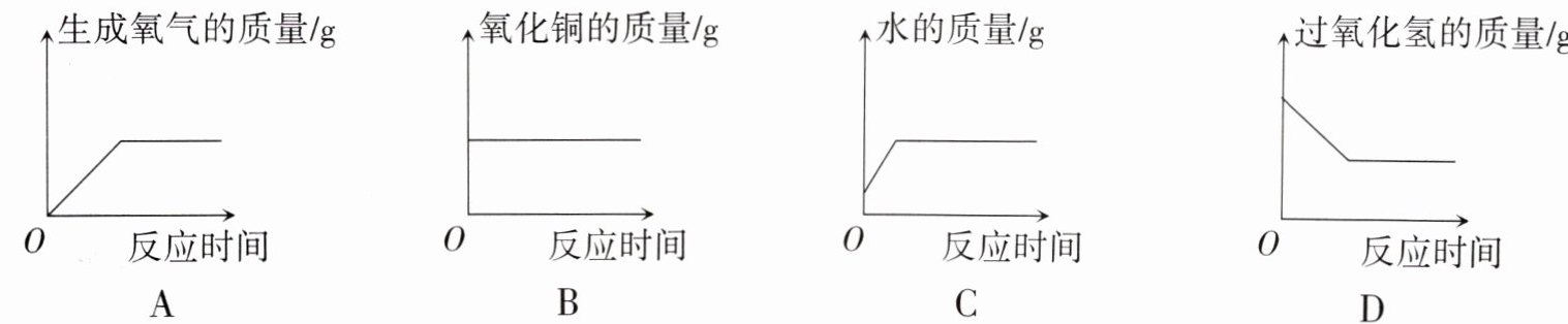 5.已知氧化铜也可以催化过氧化氢的分解,现向一定量的过氧化氢溶液中加入适量的氧化铜粉末,充分反应(忽略水的挥发),下列相关图象错误的是 ( )
