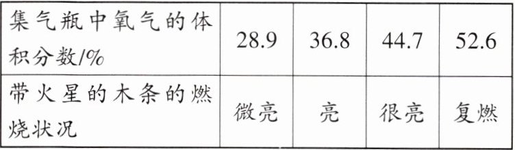 |集气瓶中氧气的体积分数/%|28.9|36.8|44.7|52.6|