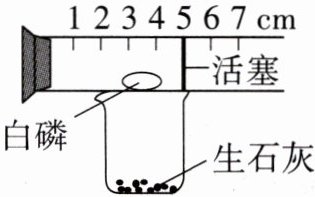 4.某同学用如图装置粗略地测定空气中氧气的含量。图中烧杯上方玻璃管(预先固定好)中有一小块白磷(足量),在左端管内密封有空气,活塞右端的玻璃管口跟空气连通,实验开始前活塞在刻度5 cm处。(已知白磷在$40^{\circ }C$时即被点燃)