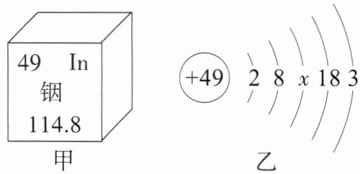 (1)图乙中x= ____,铟原子失去电子形成的铟离子的符号为____。