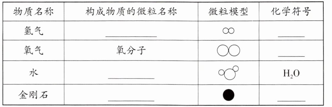 |物质名称|构成物质的微粒名称|微粒模型|化学符号|