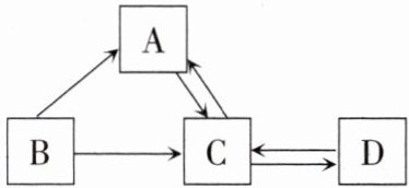 8.A、B、C、D四种物质都含有碳元素,C常用作灭火剂,A与C的组成元素相同。它们之间的转化关系如图: