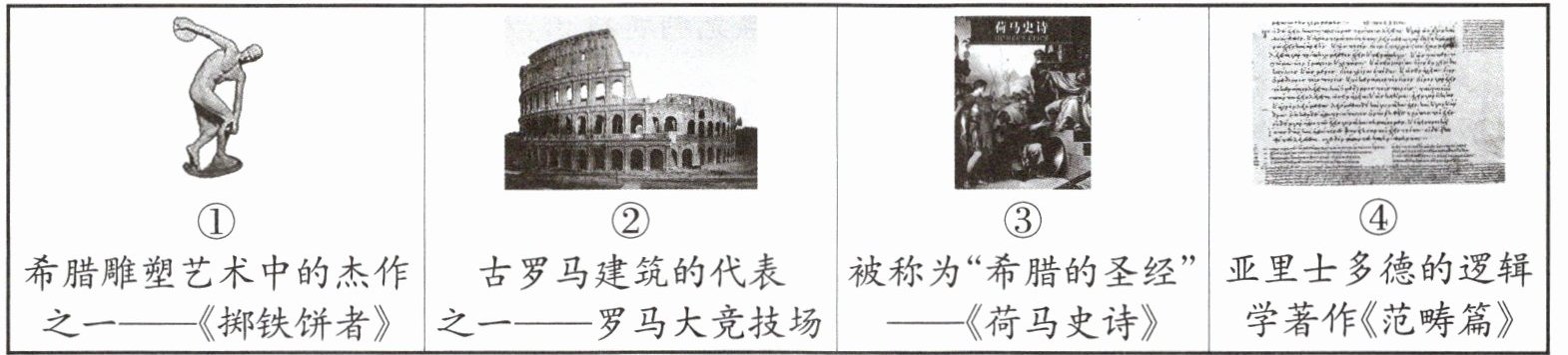 6. (2024秋·武汉期中)在古埃及太阳历的基础上创新了儒略历;吸收希腊建筑特点,创新出石拱门、穹顶等;制定《十二铜表法》,成为欧洲法学的渊源。这说明,古罗马(