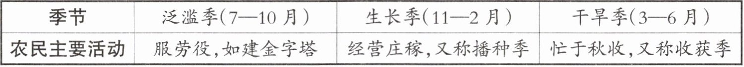 6. 下面是古埃及季节及农民主要活动分布表,从中可知古埃及(