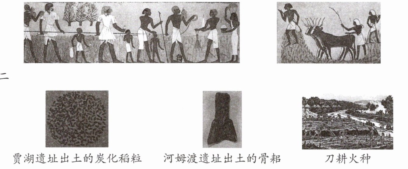 材料一 小麦是古埃及人的主要食物,下图是古埃及人种植、收获麦子的场景。