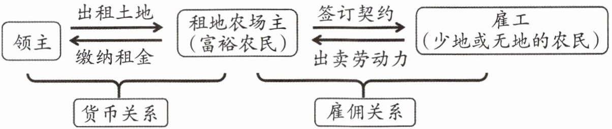 选项B,租地农场主采用新的生产方式经营土地,雇工出卖劳动力,他们之间形成了雇佣关系,这种雇佣关系的出现是资本主义生产关系的萌芽,反映了农业生产组织逐渐资本主义化,故B项正确。