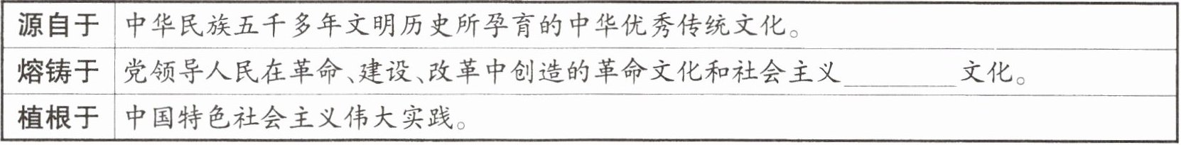 | 熔铸于 | 党领导人民在革命、建设、改革中创造的革命文化和社会主义