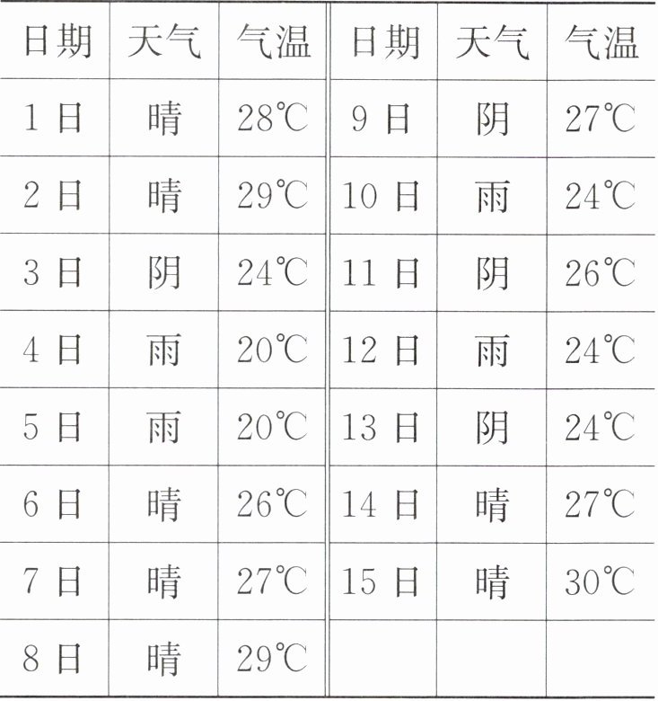 1. 下面是李林记录的其所在城市今年六月份上半月每天的平均气温。