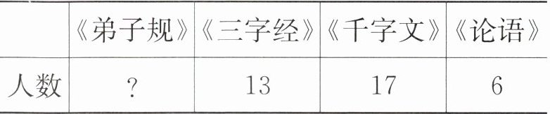 (1)最喜欢《弟子规》的人数比最喜欢《三字经》的少8人,最喜欢《弟子规》的有(