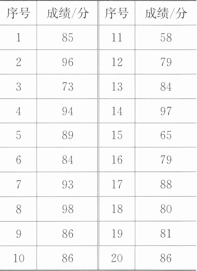 2. 下面是实验小学“歌颂祖国”比赛各位参赛选手的成绩。