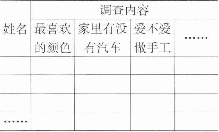 (1) 把调查结果填在下表中。