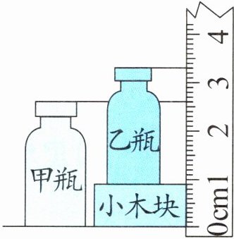 甲瓶:26 毫米 小木块:9 毫米 乙瓶:33-9=24(毫米) 26 毫米>24 毫米 26-24=2(毫米) 甲瓶高,高 2 毫米。