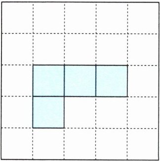 5. 在下面的方格纸中再涂出1格,使涂色部分成为轴对称图形,你有几种涂法?涂一涂。