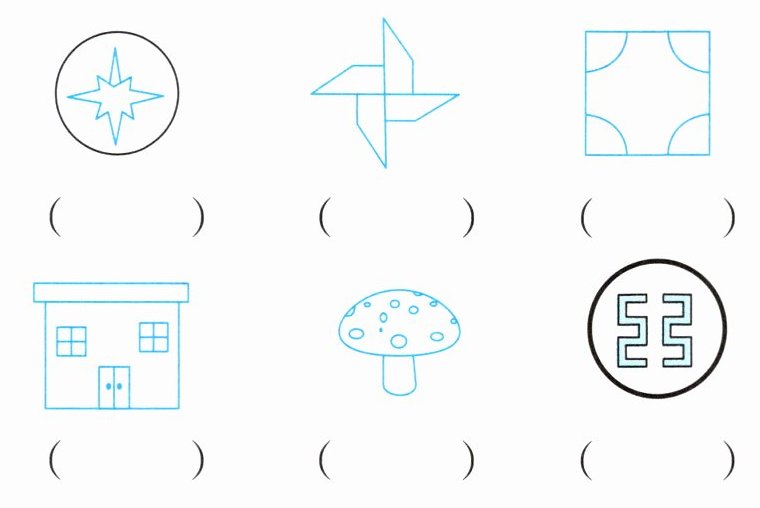 1. 观察下面的图形,是轴对称图形的在( )里画“√”。