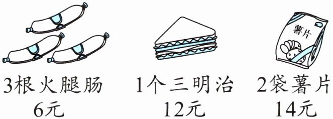 (2)买1袋薯片和3根火腿肠,一共需要多少元。