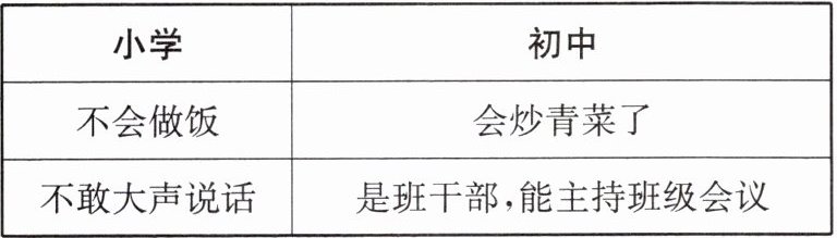 3. 步入初中,对比小学的自己,小哲有了许多变化(如下表)。从他的变化中,我们可以看出( )