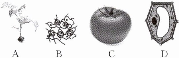 (4)请用字母和箭头按照从宏观到微观的顺序,对下图所示构成番茄的结构层次排序。