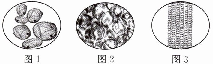 1. 同学们选取番茄果实的果皮、果肉和其内的“经络”制成临时装片在显微镜下观察,实验结果如下图所示。