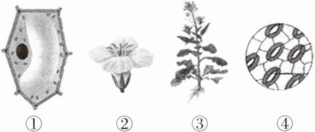 5. 以下四幅图片展示了植物体的不同结构层次,下列从微观到宏观的排序正确的是(