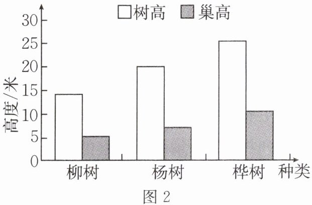 (2)科研人员测量白冠攀雀筑巢的高度,结果如图 2 所示。白冠攀雀筑巢的高度多位于树的