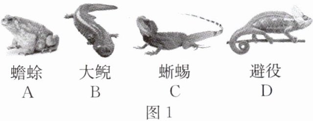 ,能减少体内水分的蒸发,卵的表面有坚韧的卵壳。(3)由图2可知,与大鲵的肺相比,蜥蜴肺的肺泡数量